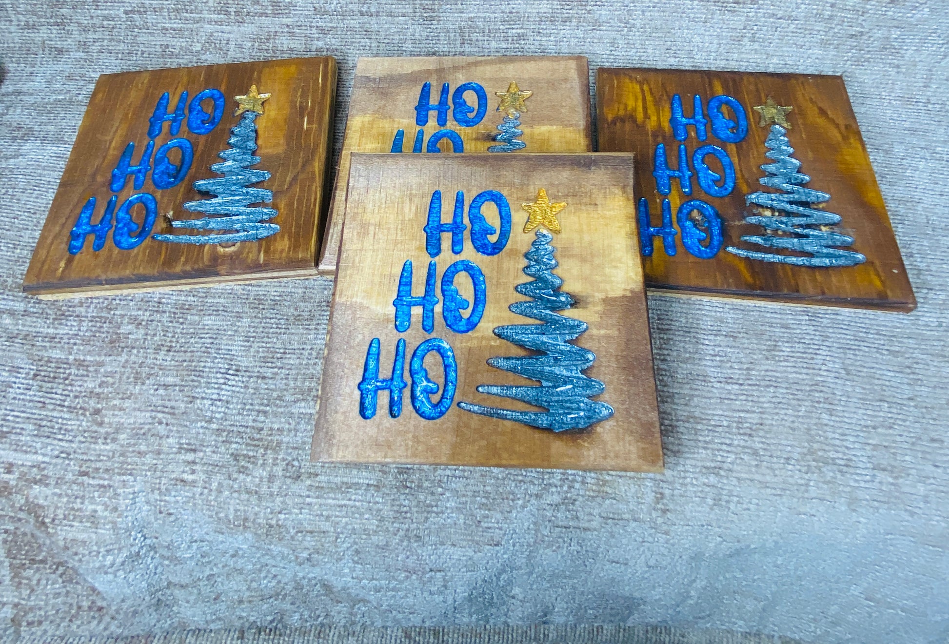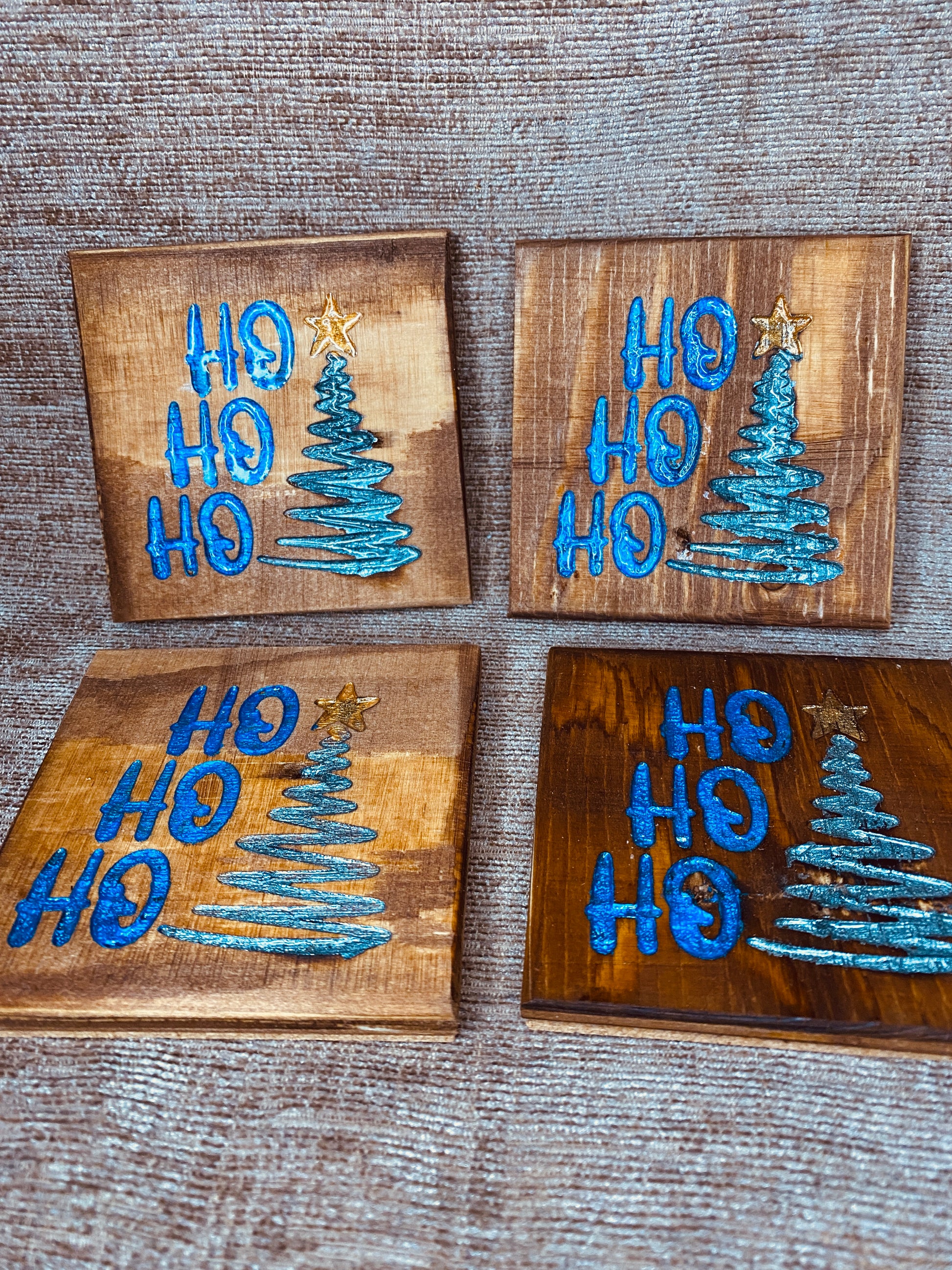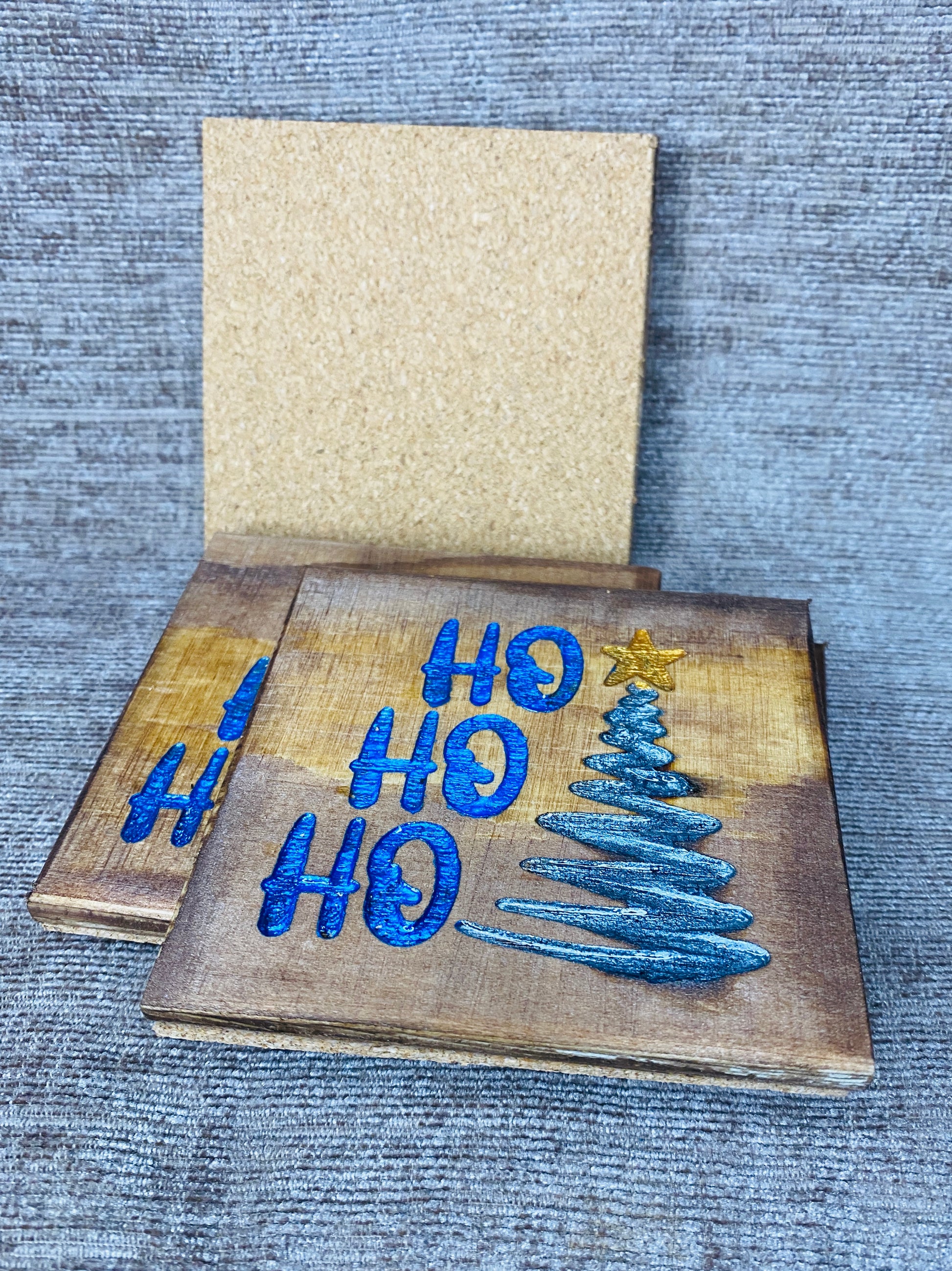 Ho Ho Ho Christmas tree coasters.