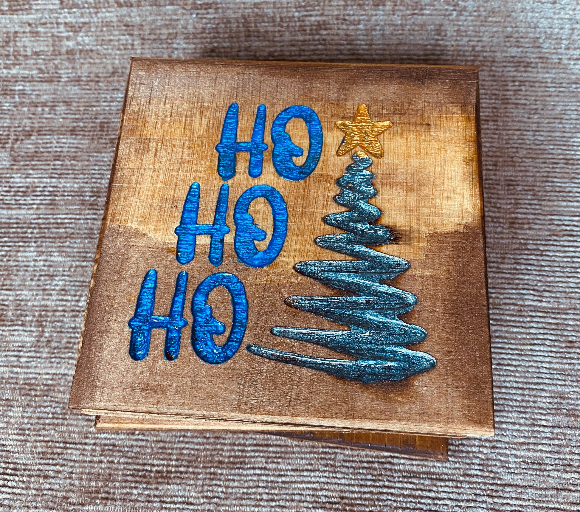 Looking for a unique and festive gift for this holiday season? Look no further! Our handmade wooden coasters feature a laser-engraved Christmas tree design with a fun "Ho Ho Ho" message. Perfect for parties or adding some holiday cheer to your mancave. Give the gift of style, to a friend or family member.