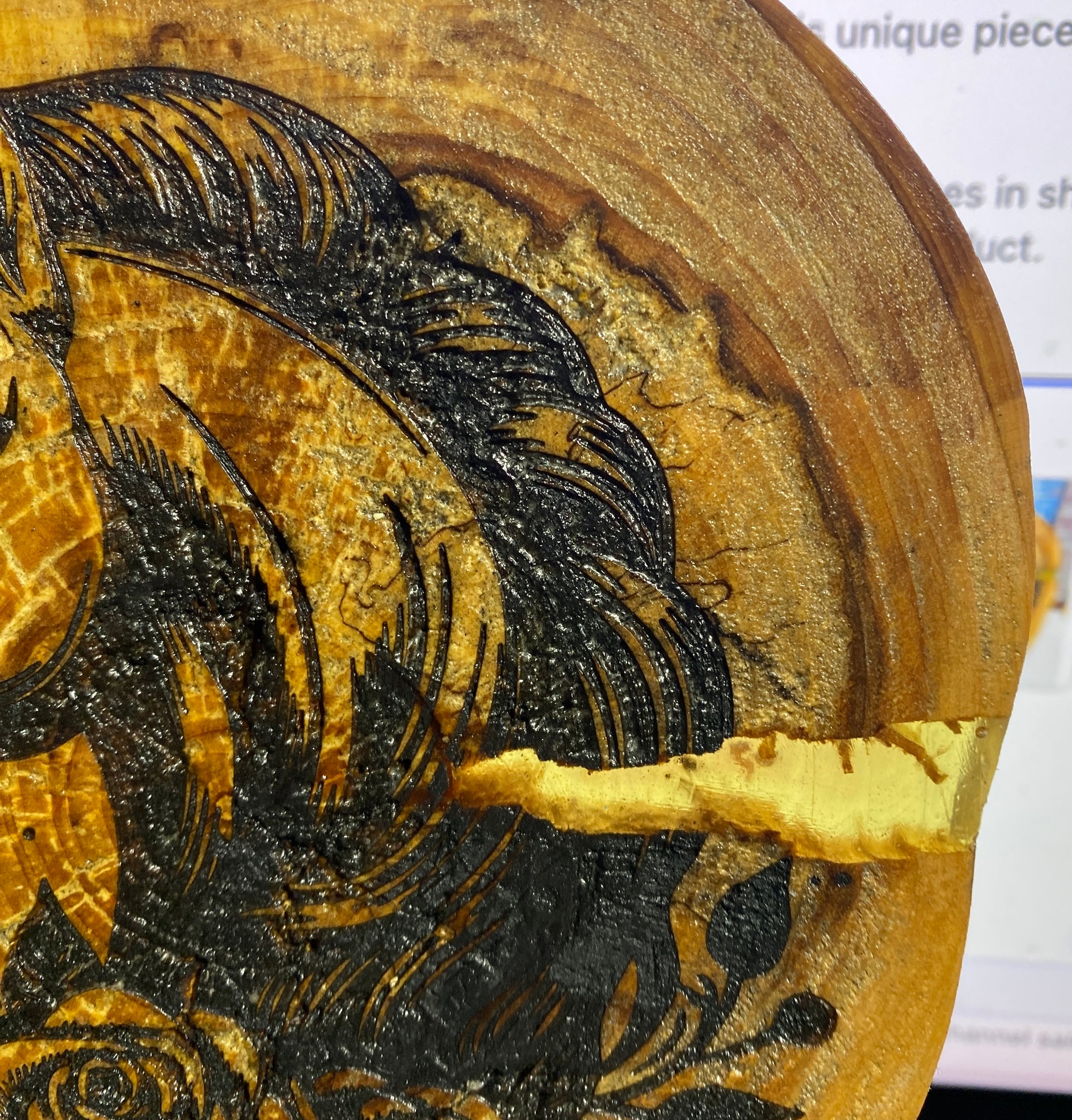 Add a touch of equestrian beauty to your home with our wall art featuring a laser engraved horse head on a rustic tree slice with a amber filled crack for that one off look. Perfect for horse lovers and riding enthusiasts, this unique piece also makes a great gift for birthdays or any occasion.