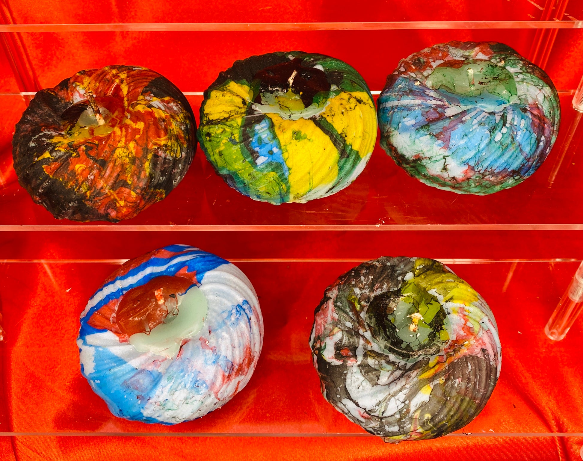 Looking for a fun and unique gift? Look no further than our package gift of 5 handmade Ornamental Candles! These colourful, doughnut-shaped candles are scented with a variety of fragrances, including vanilla. Perfect for parties or housewarmings, these candles will bring a fun and playful touch to any celebration.