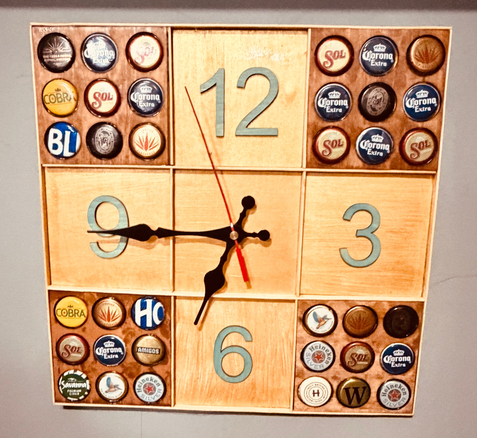 This unique handmade clock transforms vintage bottle caps into functional corner accents, creating instant character for any space. Crafted from reclaimed wood, it combines sustainability with quirky charm—perfect for adding personality to a man cave, woman cave, or any room craving something different. Each piece tells its own story, making it a conversation starter that celebrates both craftsmanship and environmental consciousness. Ideal for collectors, vintage enthusiasts, or anyone seeking décor with genuine soul.